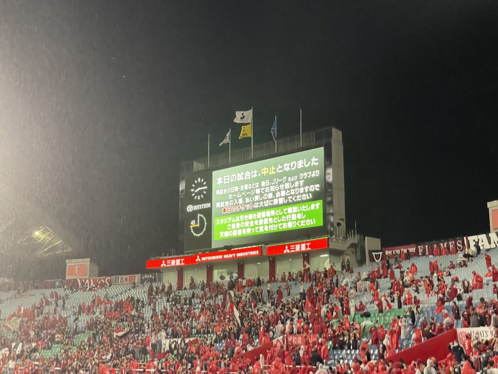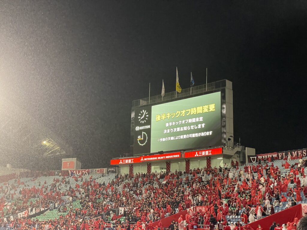 振り返れば埼スタ公式戦、2試合連続の雷雨ってことになりますね。